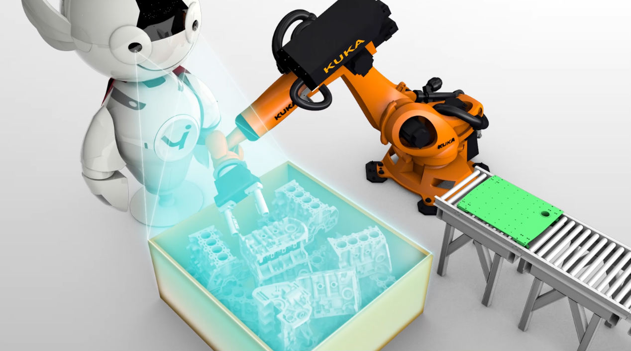 由好博联合欧洲科研机构研发的KINEYE®3D机器视觉系统,采用双摄像头人眼仿生设计,即两个视点观察同一景物,通过系统软件计算来获取目标的三维信息,以便引导机器人对任意复杂、摆放无序目标进行准确定位、抓取,从而实现生产制造中的自动上料、下料功能。这一过程犹如人眼观察景物,并在大脑中成像,然后对手臂下达拾取指令。KINEYE®3D机器视觉,一举攻破困扰企业多年的难题,不但有效节省了人工成本,更大幅度的提高了生产效率。